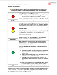 Our dedication to safety and taking initiative means that we have a Breaking Ground Policy (above) that is a traffic light system and this procedure has influenced our methodology and approach to setting out and marking out that has resulted in a Material Selection Hierarchy (below), which has also been emulated by one of our larger clients as a policy aimed at reducing service strikes with pins, demonstrating how we take a pro-active view to Health & Safety and forever looking to developing and improving our systems and controls.