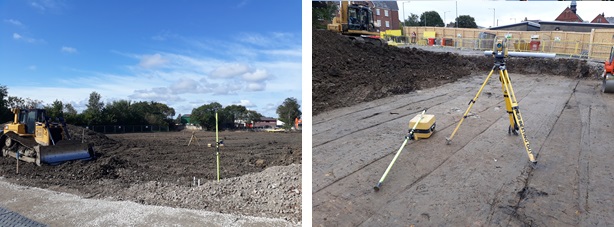 The first project for Willmott Dixon Construction, starting onsite in week two, beginning to review the existing control onsite and also review drawing's ahead of the bulk 'Muck shift' involving the cutting and filling of the site to form the construction platform for the building and also the formation for the All Weather Pitch and Muga. On completion of the construction platform setting out for the vibro piling of one wing of the building.