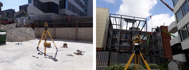 Returning to site, with the remediation, piling and the foundation for the south and leisure blocks completed. Taking on the role of setting out for trades onsite that do not have their own engineer or that the Principal contractor is responsible for providing line and level e.g. brickwork, cladding and curtain walling. Again reprising the role of checking or complete works such as formation and finished slabs, to determine surface regularity and tolerance.