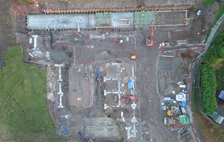 The project involves the excavation of pad foundations and strip footings, with an estimated concrete volume of 240m3 along with over 400 holding bolts ahead of the structural steelwork. In addition to the foundations, foul and surface water drainage along with hard standings and parking is being installed to serve the extension and connected into the existing onsite infrastructure.