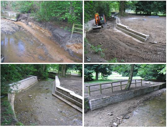 Underpinning and rebuilding the existing stone retaining walls, demolition of a storm damaged footbridge and replacement; works included some minor hard and soft landscaping with responsibility for all the site engineering and site management reporting directly to a contracts manager.