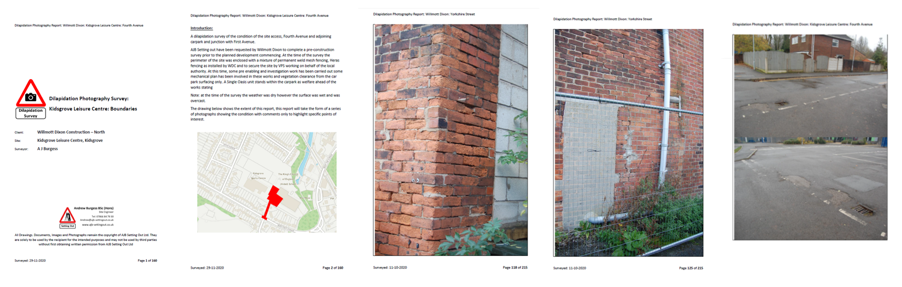 This will enable you to rebuff any bogus or incorrect claims of damage to road surfacing, boundary fences or footpath surfacing, both during and after the construction project. A report offers a better solution to simply a series of photographs with no clear location or description: -
